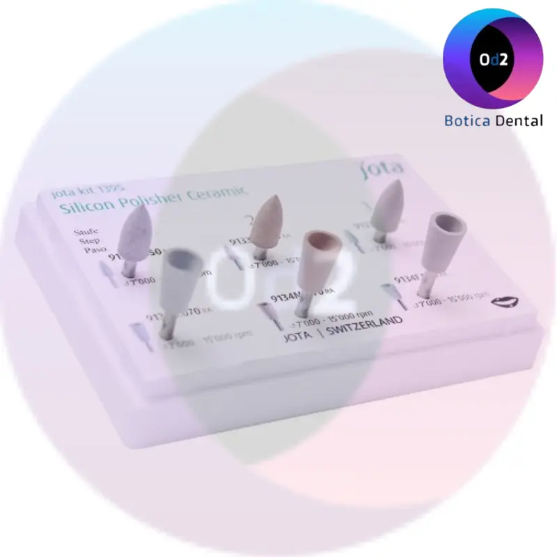 - Silicon Polisher Kit (Pulidores de Silicona) – JOTA incluye un set completo de pulidores de silicona para acabados estéticos en restauraciones dentales. Ideal para clínica o laboratorio, garantiza un pulido eficiente y seguro sobre materiales como resina compuesta, cerámica y metales. Compatible con contra-ángulo y autoclavable.