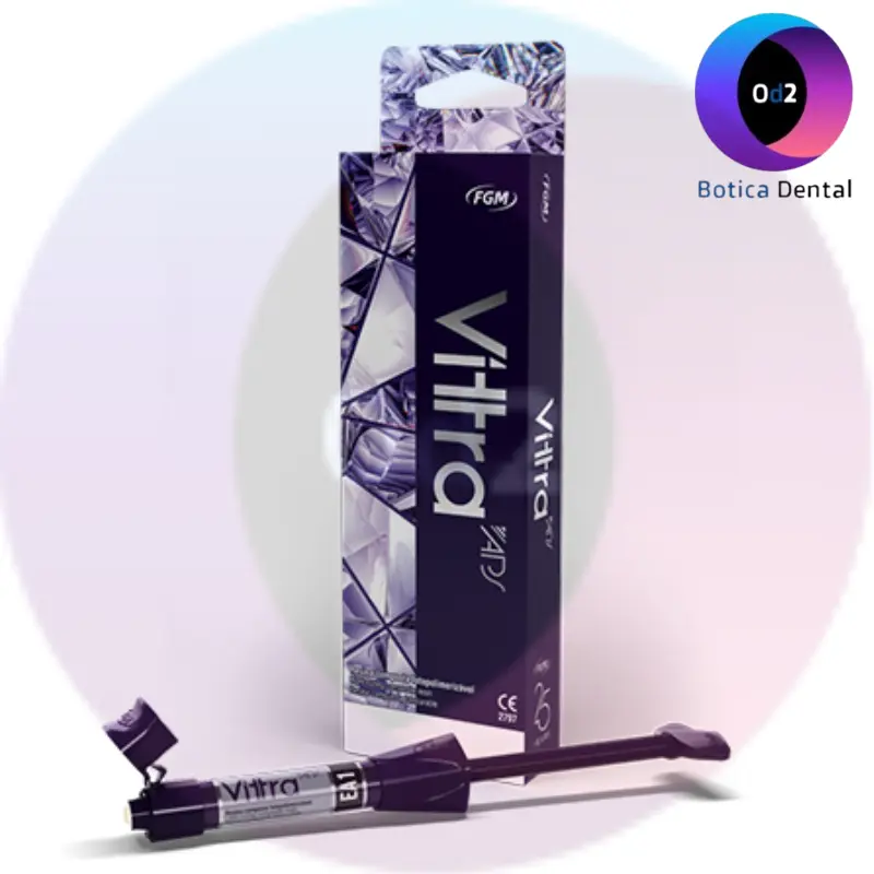 - Vitra (Resina Nanohíbrida) – FGM es una resina estética versátil de uso clínico, con excelente mimetización, alta resistencia y fácil esculpido. Ideal para restauraciones duraderas tanto en sector anterior como posterior.